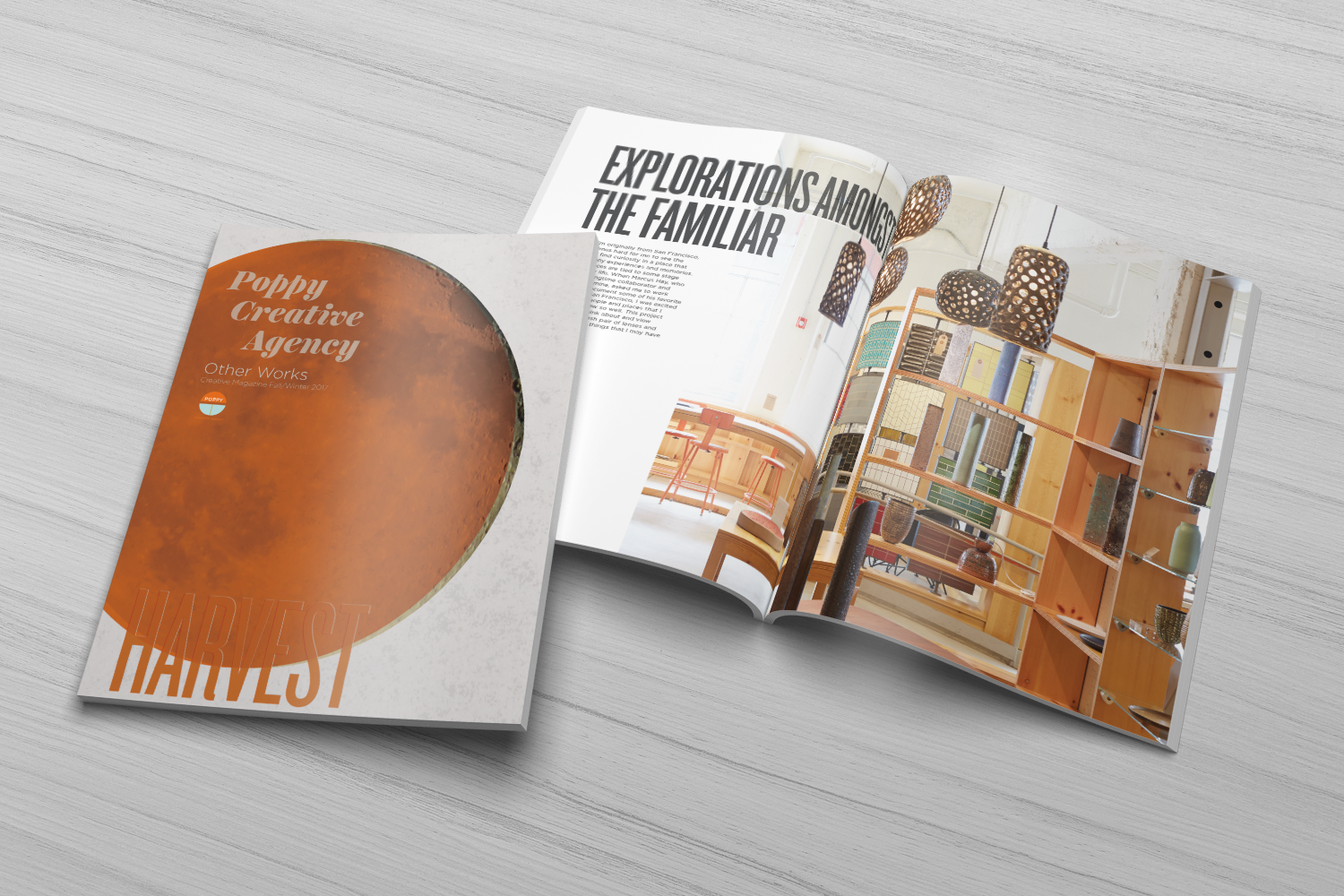 Quarterly publication showcasing personal projects from Poppy Creative Agency's photographers and stylists. The editorial design provides a platform for creative exploration beyond commercial work, celebrating the agency's artistic talent and fostering creative culture. Result: A curated showcase that strengthens agency identity, demonstrates creative range, and serves as a recruiting and client engagement tool through compelling visual storytelling.